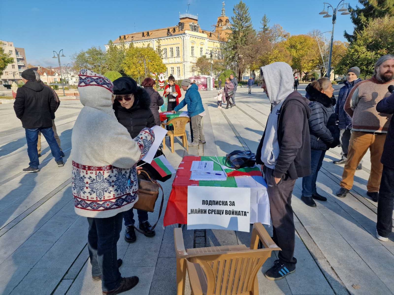Подписи за мир и неутралитет на България във войната в Украйна събираха днес в центъра на Силистра. Според организаторите от Движение "Майки срещу войната" това е изцяло гражданска инициатива и цели да се покаже отношението на българския народ към решението за изпращане на оръжие в Украйна и прякото или косвено въвличане на България в конфликта.