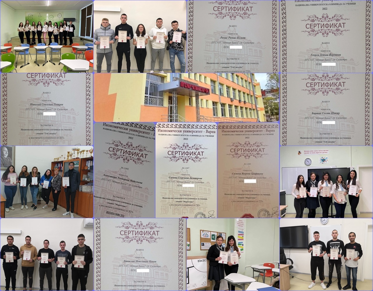 Тази година Икономически университет – Варна проведе национална олимпиада за ученици от 26.11.2022 г. до 3.12.2022. Университът предложи разнообразие от тематични области, в които учениците от 11 и 12 клас можеха да се изявят и да се включат в ранен прием и избор на специалност. Така учениците се докоснаха и достигнаха по-бързо до желаното от тях икономическо образование в Икономически университет – Варна. ПГСУАУ"Атанас Буров" гр.Силистра се включи традиционно и тази година и възпитаниците ú заеха призови места в класирането.