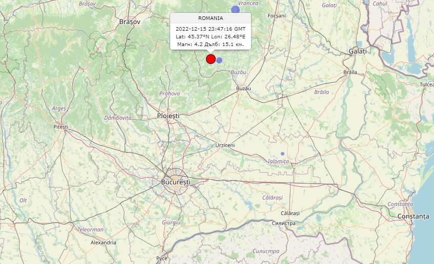 Земетресение разлюля Румъния тази сутрин на 16.12.2022 в 1:47:16 часа