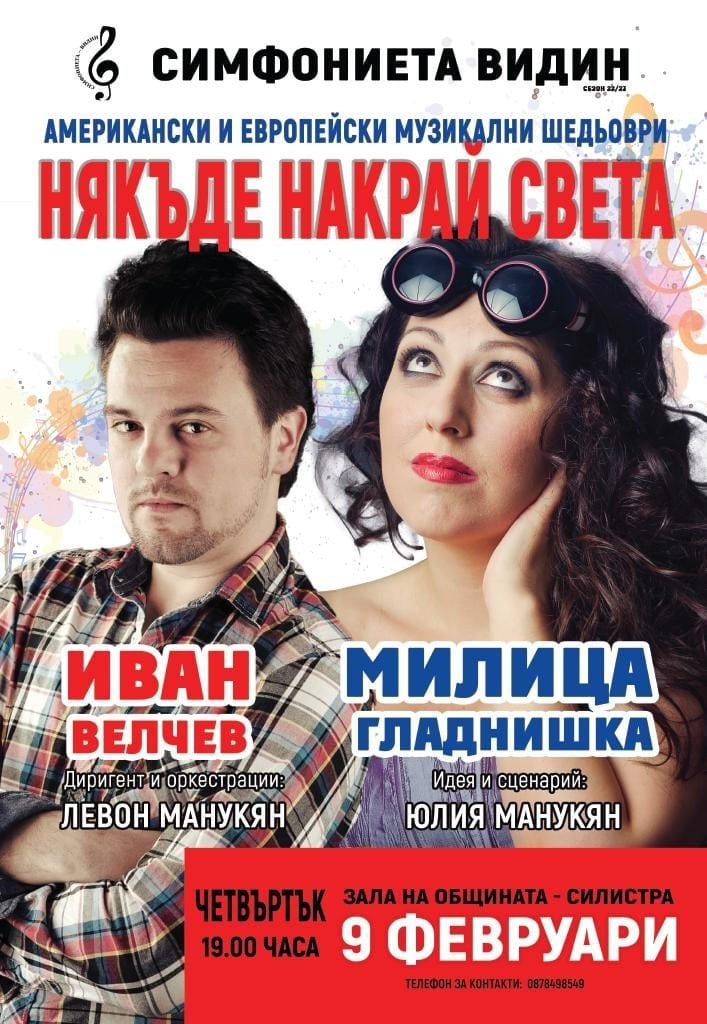 Със сигурност има един бар, до който не бихте стигнали лесно, защото е на края на света. Управител, сервитьор, диригент, оркестър и една случайно попаднала там певица ще върнат тълпите посетители в позабравеното заведение. Бъдете част от тази публика и не пропускайте възможността да заемете вашето място. Благодарение на Симфониета Видин, под диригентството на Левон Манукян и солистите Милица Гладнишка и Иван Велчев, ще попаднете в света на американската музика, поднесена с много настроение, малко сантимент и огромна доза смях.