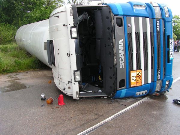 20-тонна автоцистерна с пропан-бутан се е преобърнала тази нощ край Силистра, а водачът й е настанен в болница с опасност за живота. Произшествието е станало на 19 май около 23.20 часа по околовръстния път Шумен – Силистра – Русе, на около 5 км от Силистра. 50-годишният И.М. бил зад волана на товарния автомобил "Скания", превозващ газ, но загубил управлението и автоцистерната се преобърнала на пътното платно. Водачът е получил тежка черепно-мозъчна травма, има опасност за живота му.