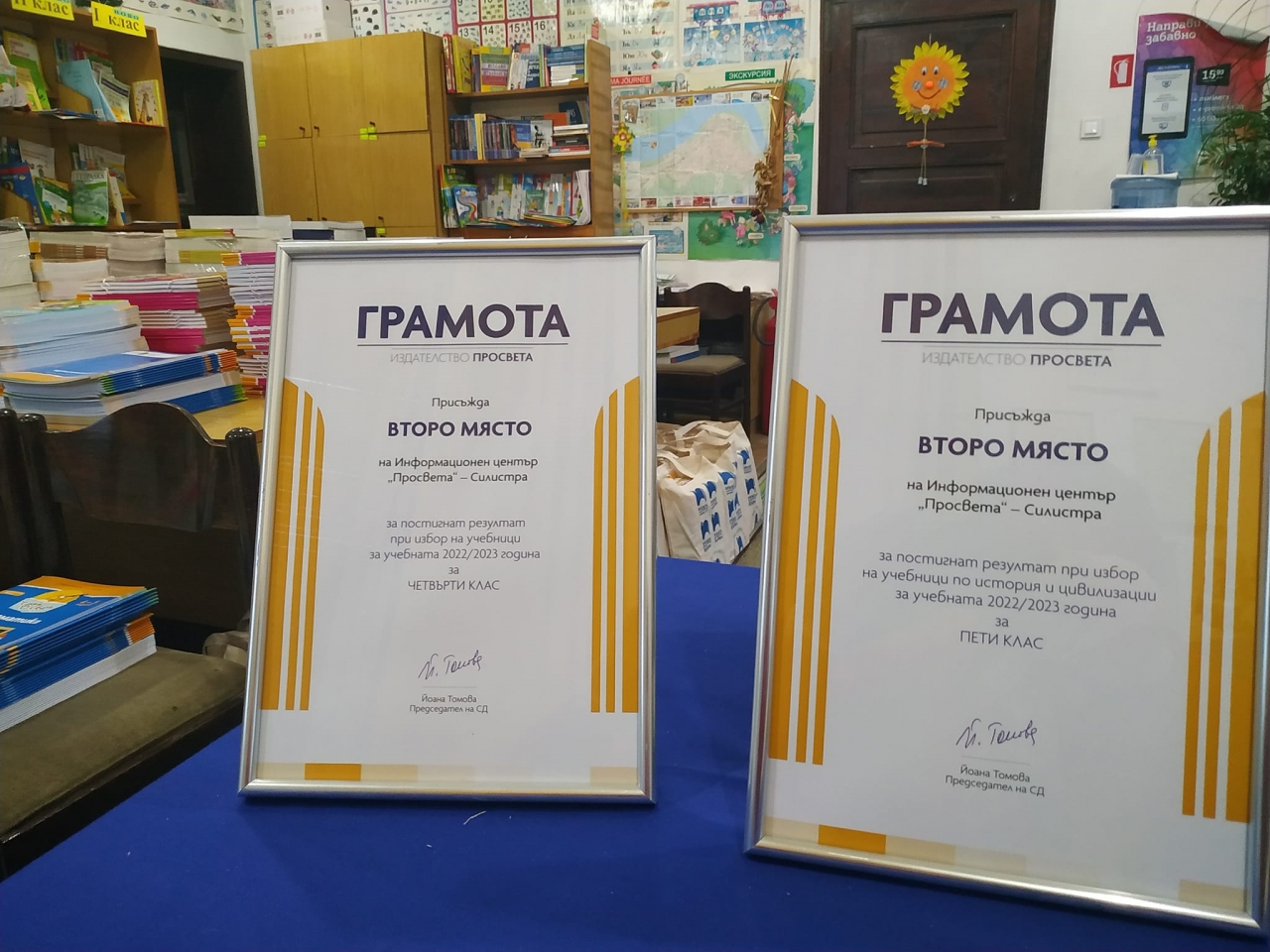 Днес от Информационен център на "Просвета" - Силистра се похвалиха с две грамоти и второ място в страната за избор на учебниците на ,,Просвета,, за област Силистра.