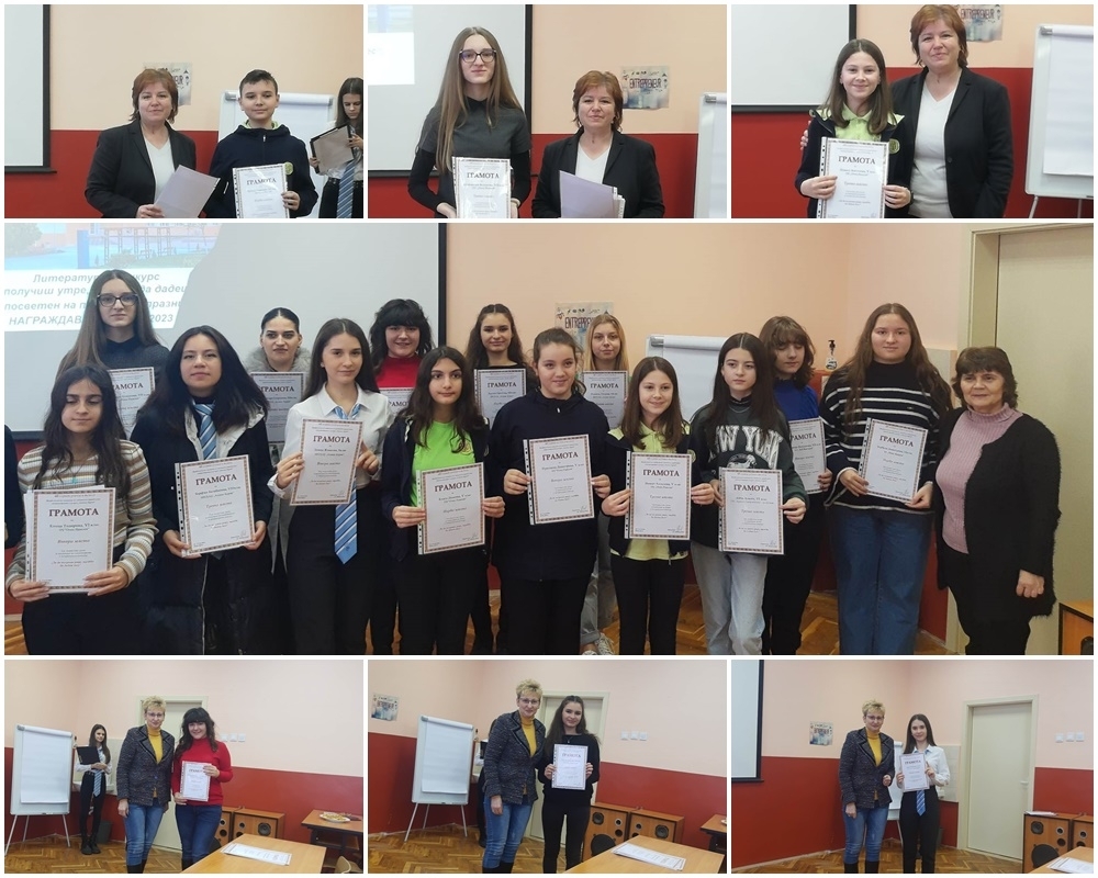 По този повод в гимазията организираха литературен конкурс на тема "За да получиш утре, трябва да дадеш днес", резултатите от който бяха обявени на литературно четене. Ученици от много училища в областта се включиха със свои творби. Директорът на гимназията г-жа Денка Михайлова и зам.-директорът г-жа Ирина Гетова поздравиха младите творци и наградиха най-добрите.