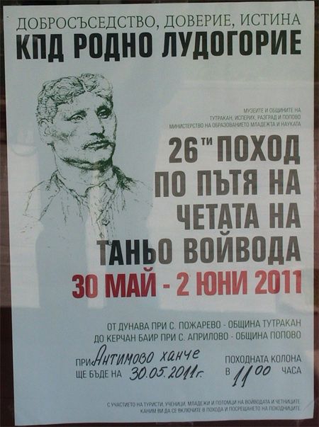 За 26-и път Културно-просветното дружество "Родно Лудогорие" организира традиционния "Поход по пътя на четата на Таньо войвода". Походът тази година ще потегли на 30-ти май, понеделник, от Тутракан. На 2-ри юни, в Деня на Ботев и загиналите за свободата на България, точно в 12.00 ч. походът ще завърши с поклонение пред паметника на Таньо войвода в местността Керчана, при с. Априлово, Поповско, на лобното място на войводата.