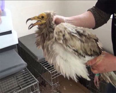 На място е направен и бърз преглед, при който е установено и силно обезводняване и изтощаване на птицата с леко изразена анемия.