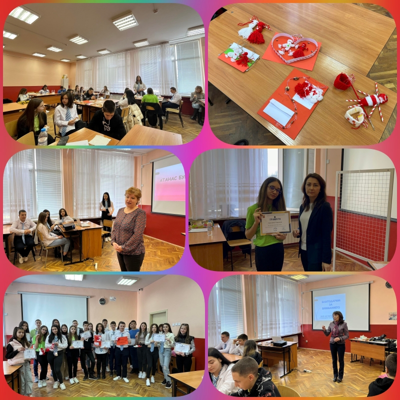 На учениците, разделени в пет екипа бе поставена приятната задача да изработят интересна мартеница, която да представят по атрактивен начин.