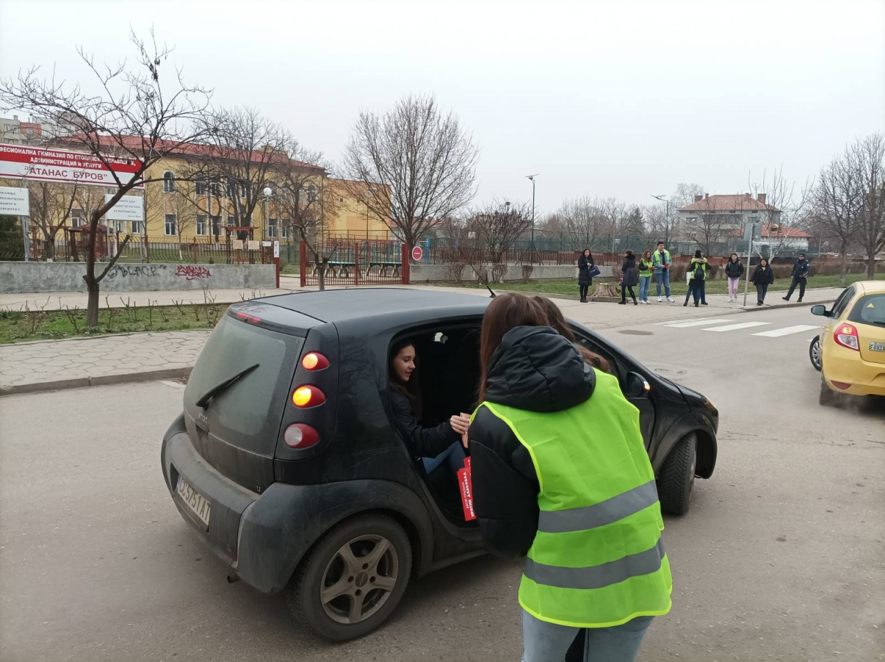 През седмицата ученици от ЕГ "Пейо Яворов", ПГМТ "Владимир Комаров" и ПМГ "Св. Климент Охридски" раздаваха информационни материали пред учебните заведения.