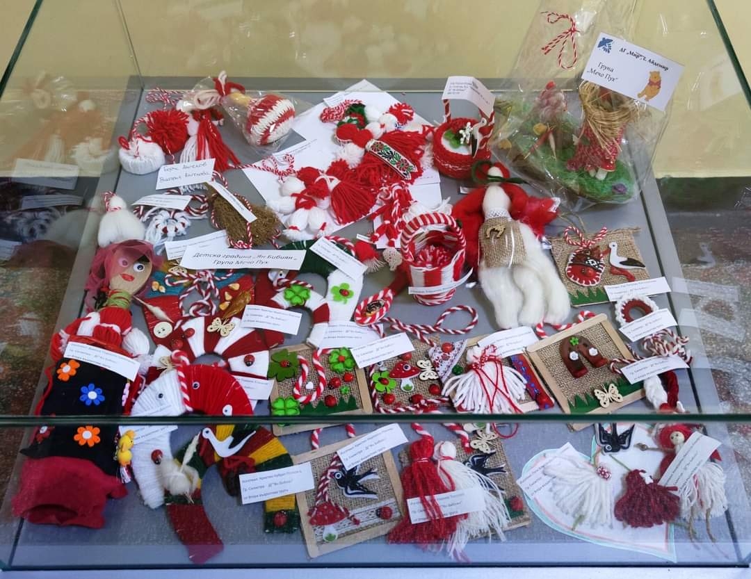 С много въображение и сръчност са вплетени традиционните бели и червени конци, и естествени материали – клонки, семена, цветя. Пролетните символи са послание за здраве, дълъг живот, плодородие и ни напомнят, че трябва да посрещнем пролетното обновление с надежда за по-добра година и ние самите да бъдем добри.