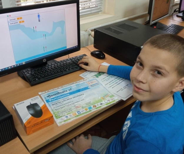 Мартин Ивелинов Георгиев – 4 клас от школата по компютърно моделиране към ЦПЛР – ОДК, Силистра с ръководител г-жа Атанаска Гинова се представи отлично в Международното състезание по скрач програмиране "World Game Coding Competition 2023" на тема "Зимни игри".