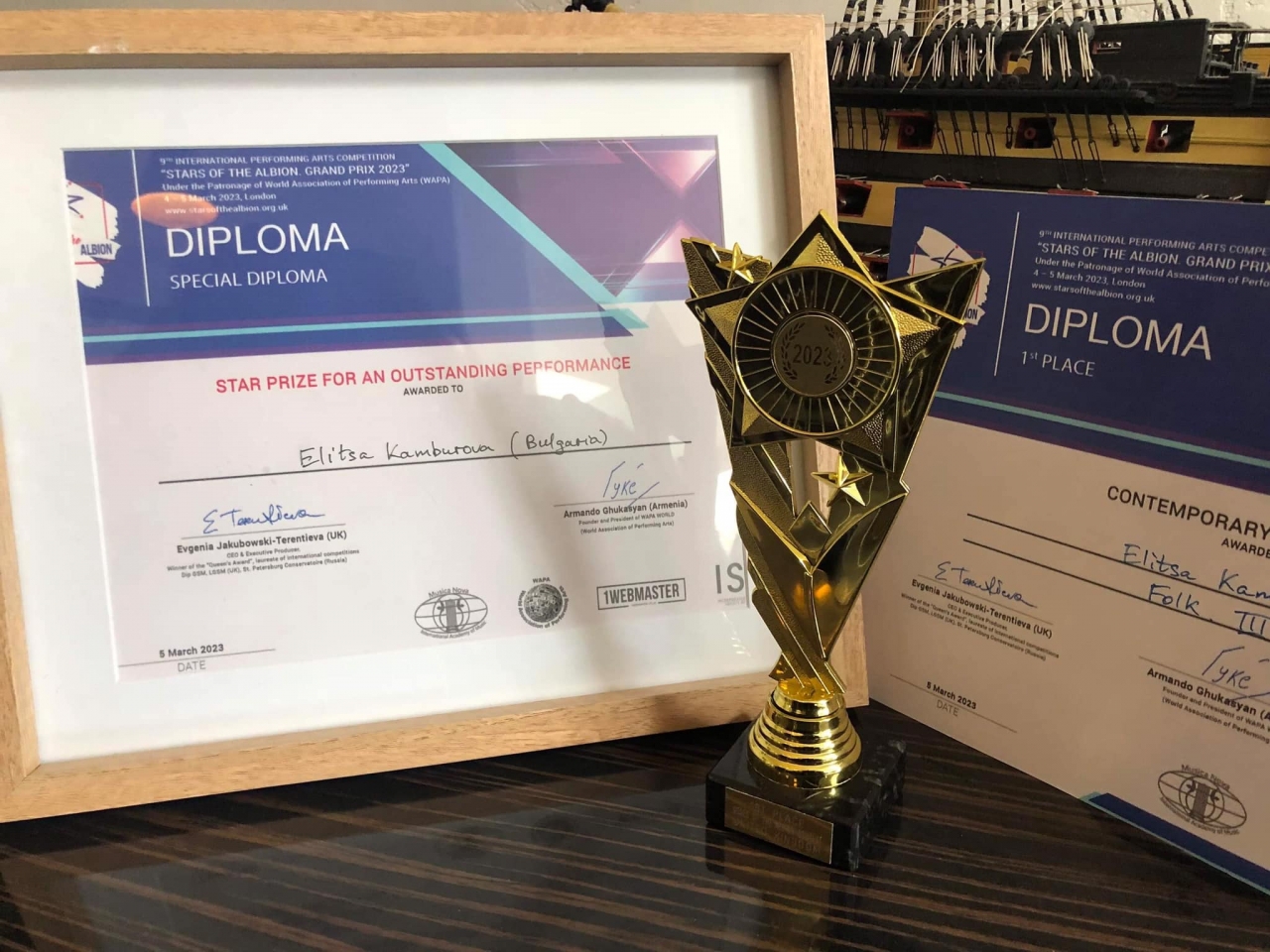След чудесно представяне в категориите "Поп" и " Фолклор" , Елица много заслужено бе отличена от журито и организаторите като участника с "Outstanding performance" и в двете категории.