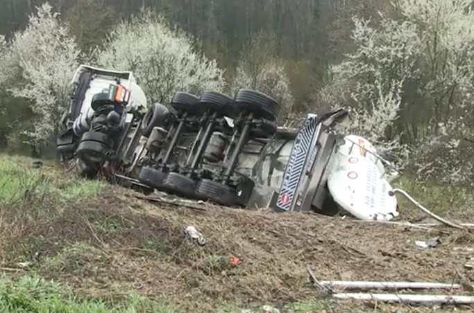 Това е наложило на място да бъде изпратен и екип на пожарната, но товарът се е оказал 25 тона растително масло. Въпреки това огнеборците са обезопасили мястото, тъй като е имало и разлив на гориво от резервоарите.