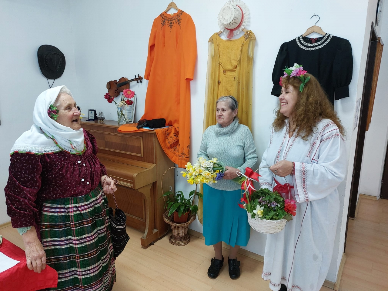 Баба Марта - Мария Христова от Група "Добруджа", предава щафетата на Първа пролет - Йорданка Иванова, в тържество, проведено в Зала за обреди и обичаи на НЧ "Доростол" в град Силистра.