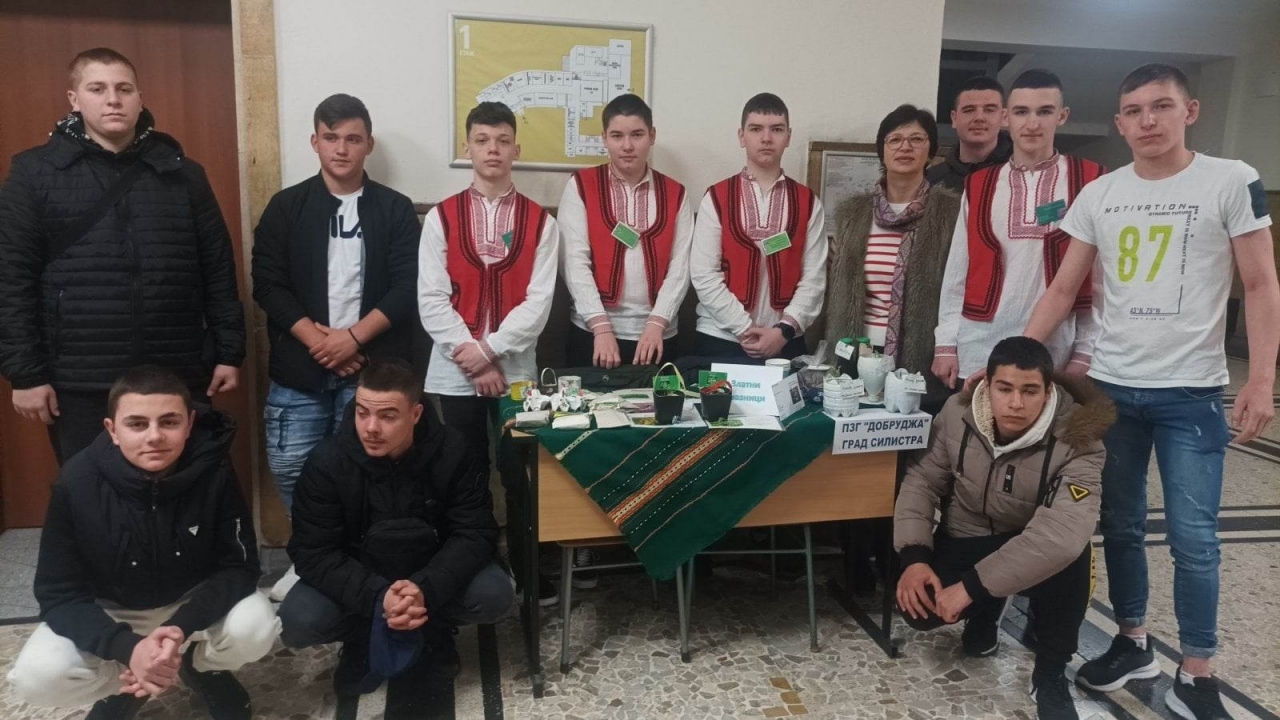 Учениците от ПЗГ "Добруджа" - Силистра взеха участие в Регионалното състезание на учебните компании на програмата на Джуниър Ачийвмънт. Гимназията участва с две компании - "Златни празници" и "Билки Гарден". На два щанда, учениците от 9-ти клас представиха своята продукция: еко свещници, великденски поставки за яйца от рециклирани материали, разсад на домати и билки, ароматни възглавнички, пакетирани билки за чай, а след това в залата представиха своите дейности с презентации. Пресиян, Йоан, Иван Енчев и Виктор представяха компаниите на щандовете.