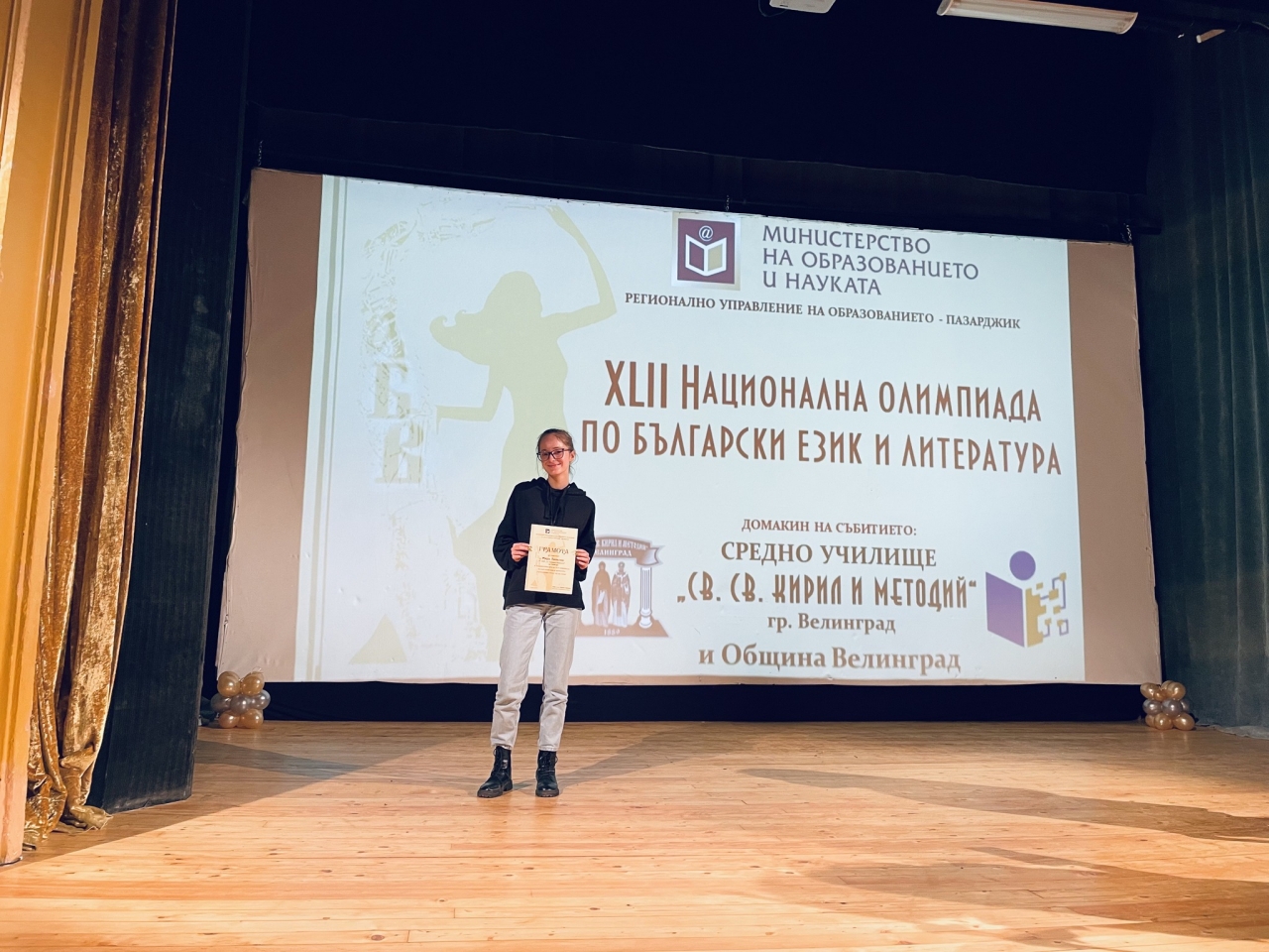 Тя премери сили с ученици не само от девети, но и от десети клас, като успя да се класира сред първите десет (на шесто място) и накара всички да се гордеем с поредното ѝ постижение. Особено развълнувана е г-жа Искра Йорданова, съпътстваща я в това езиково и литературно предизвикателство.