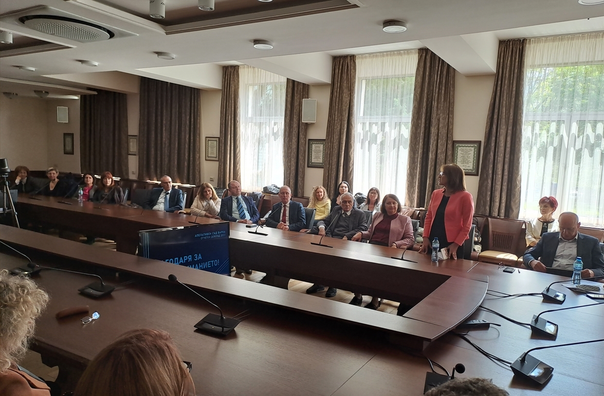 Директорът на Националния институт на правосъдието Миглена Тачева поздрави съдиите и служителите за неспирния им стремеж да развиват професионалните си качества – над 130 представители на съдебната власт в региона са се включили в над 600 обучения на НИП през изминалата година. Съдии от апелативния район активно участват в разработването на ключови са системата стандарти, инициативи и обучителни ресурси.