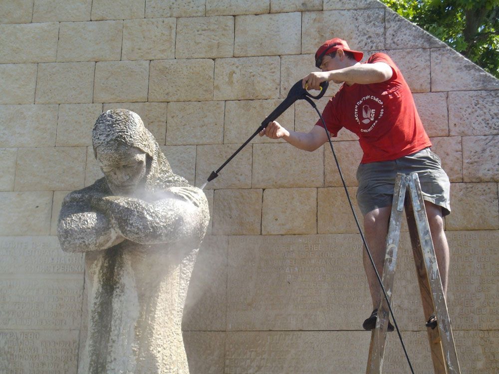 Социалисти пестят пари на общината в Силистра, с водоструйка чистят паметника "Тъжната майка"