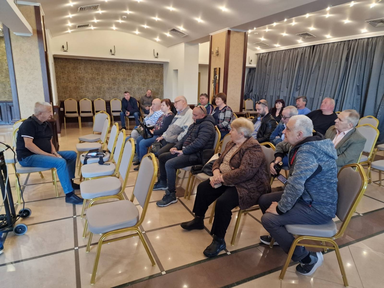 На срещата в хотел "Дръстър" Крушарски разказа за дейността на фирмата си и какви предимства дава неговия фирмен начин за борба с градушките и възможностите, които се разкриват при ползване на технологията и за борба с безводието в житницата на България.