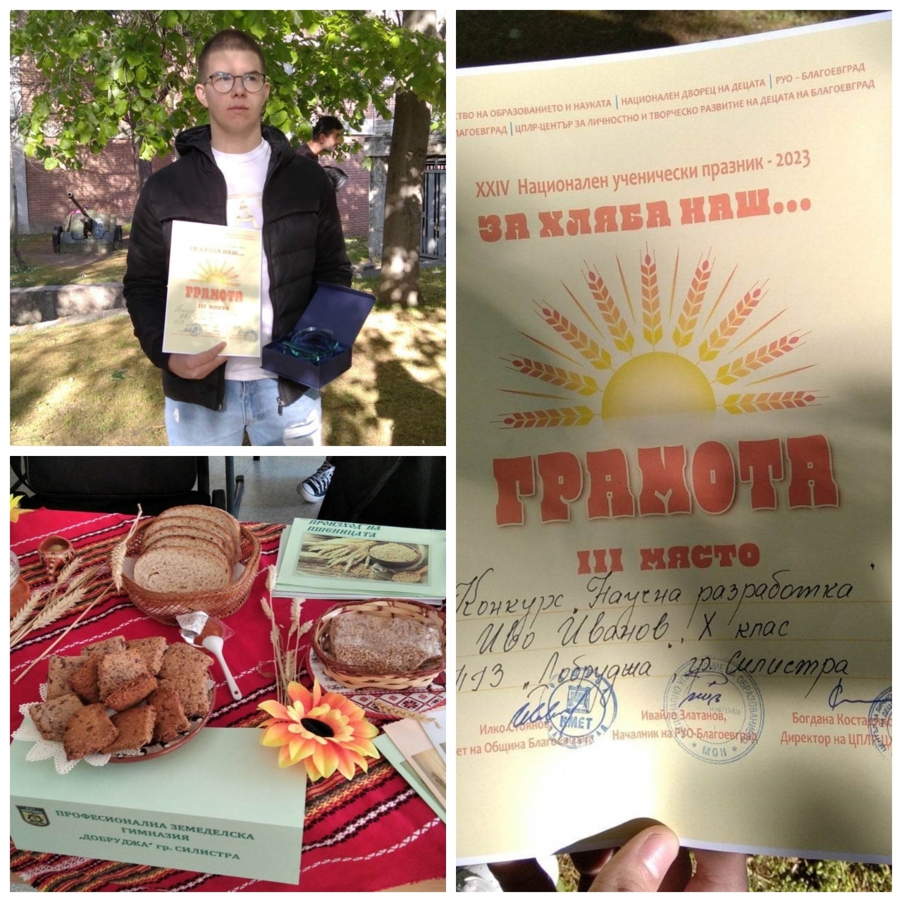 Иво Иванов от Силистра с престижно класиране от Националния ученически празник ,,За хляба наш…"
