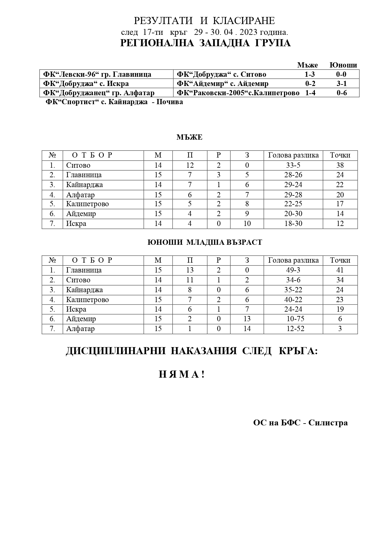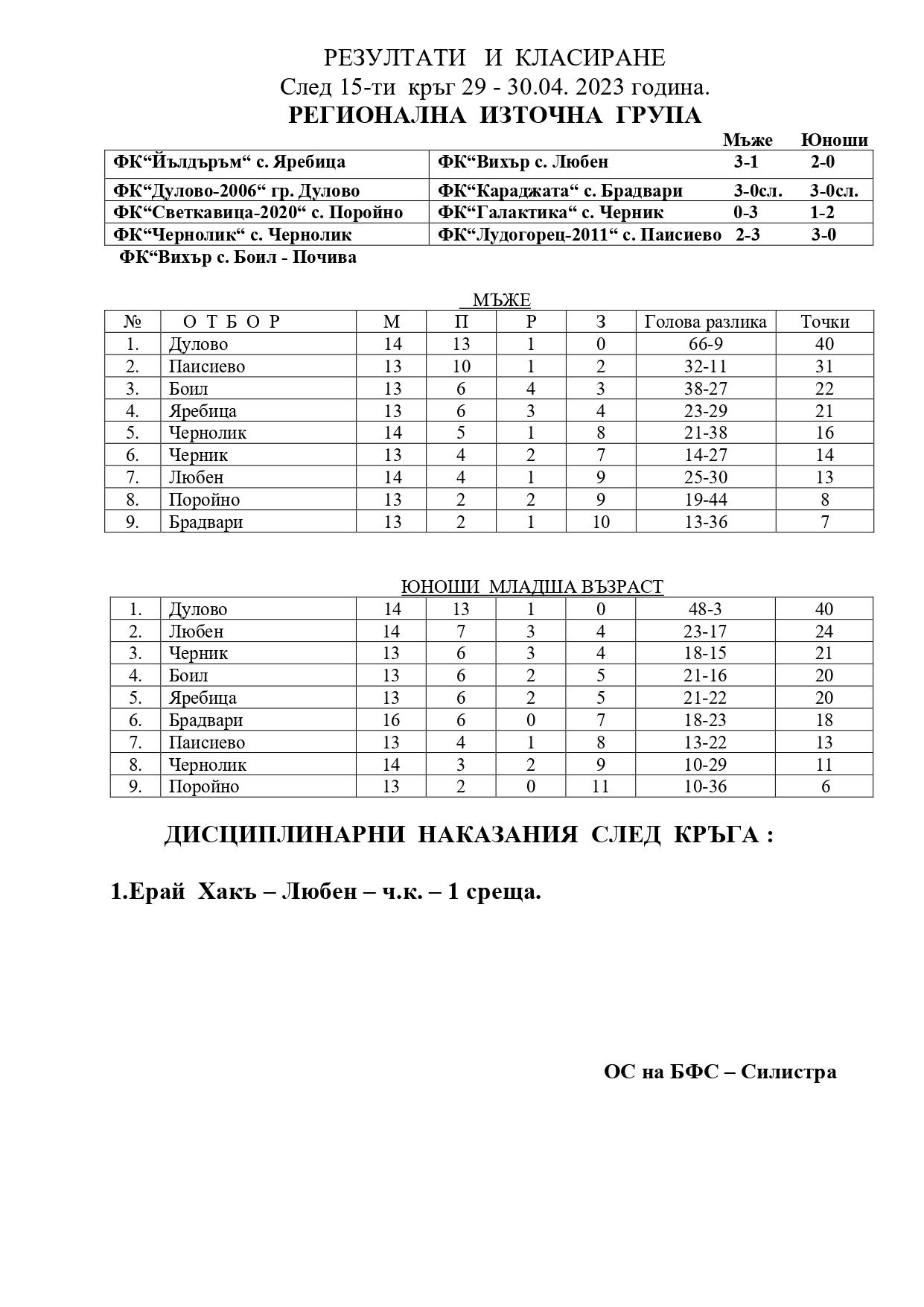 XVI кръг 06.05.2023 г.- СЪБОТА