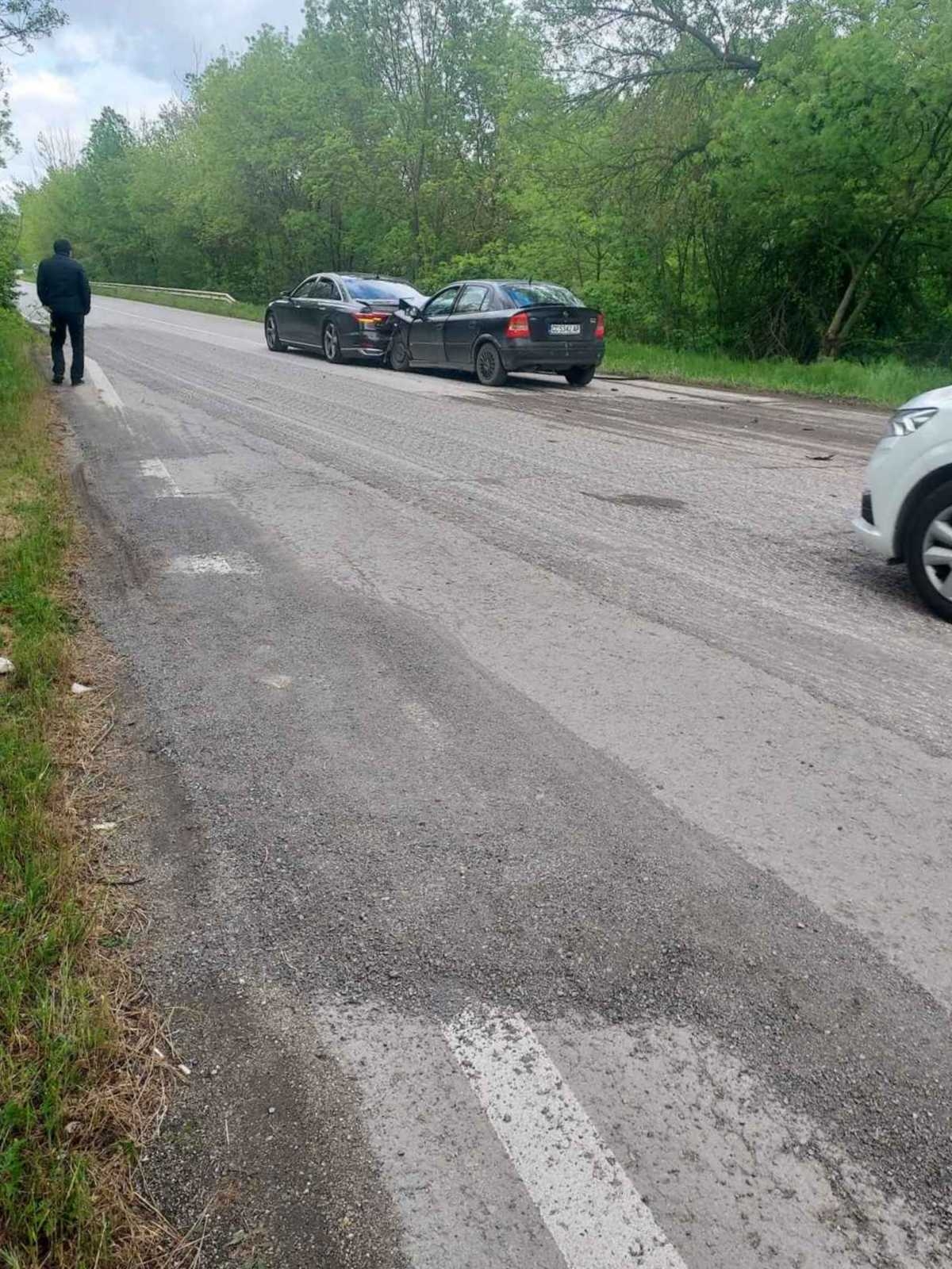 Лек автомобил марка "Опел" е ударил отзад "Ауди" на участък, където асфалтът е нарязан.