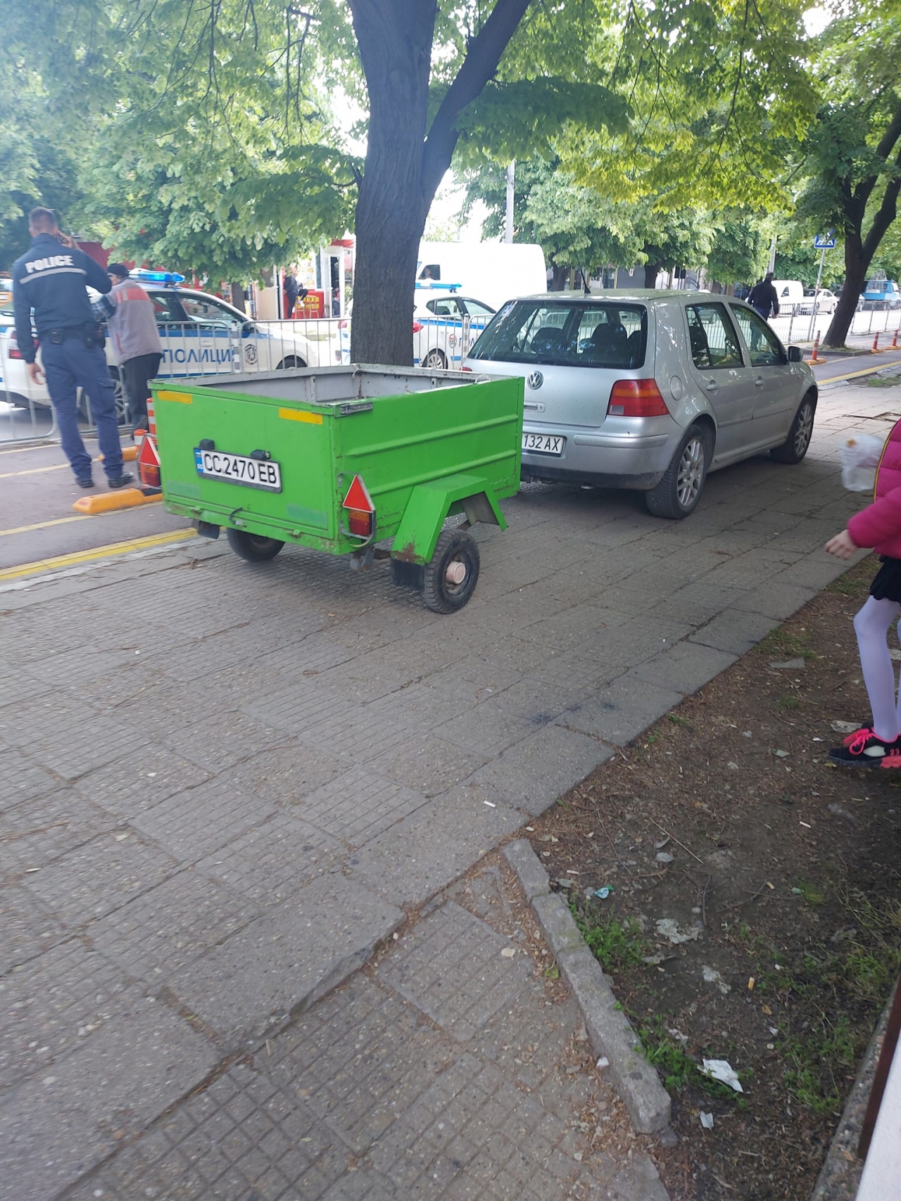 Дядо шашна силистренските полицаи с Голф и ремарке на тротоар