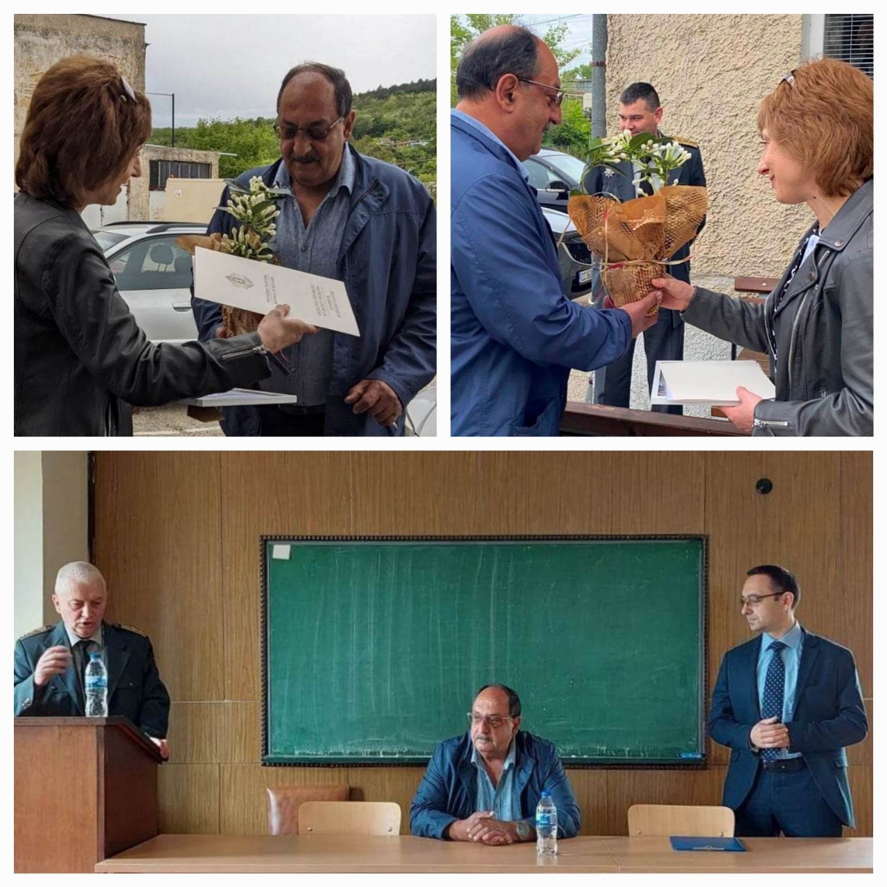 Чрез поздравителен адрес и цвете своето уважение към юбиляра засвидетелства областният управител инж. Николай Неделчев, определяйки комисар Мъров като стожер на институцията, работеща за хората.