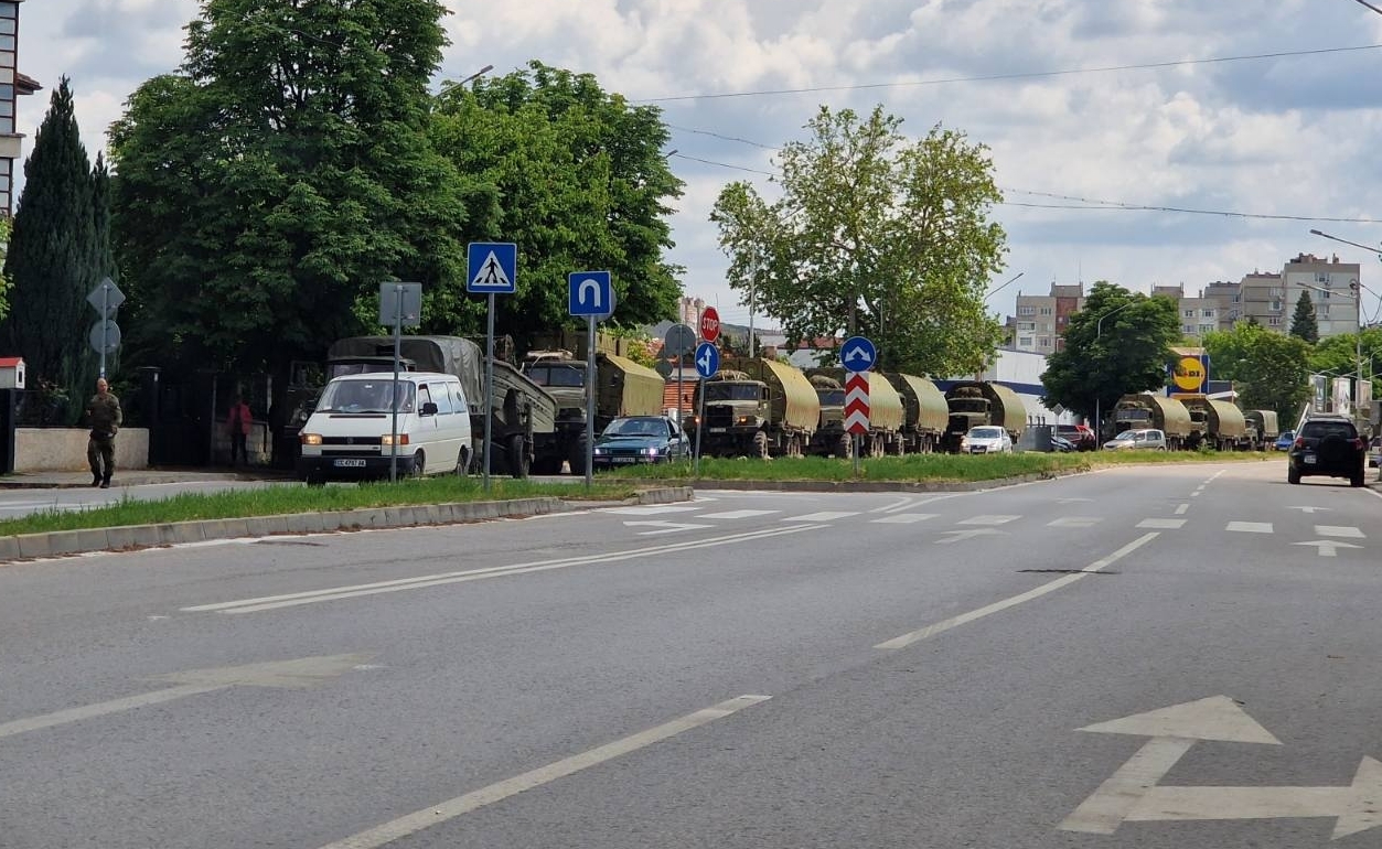 Колоната от военни машини, съпровождана от военна полиция, премина границата малко преди 15.00 часа.