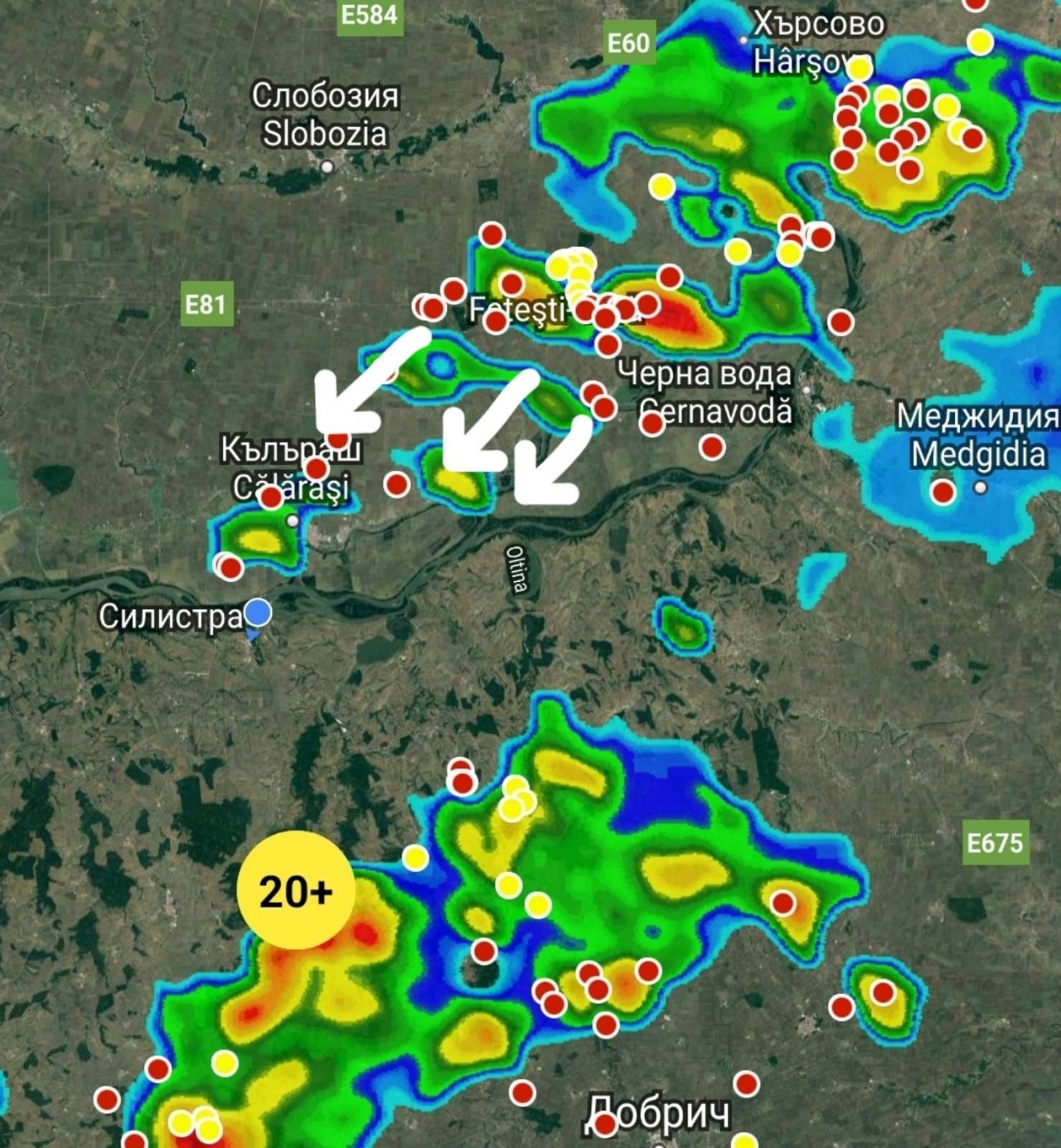 Паралелно с това, друга буря се развива между Добрич и Силистра, премествайки се в посока към югозапад. Обстоятелствата указват, че и двете бури носят силни вятърни пориви и значителни валежи.