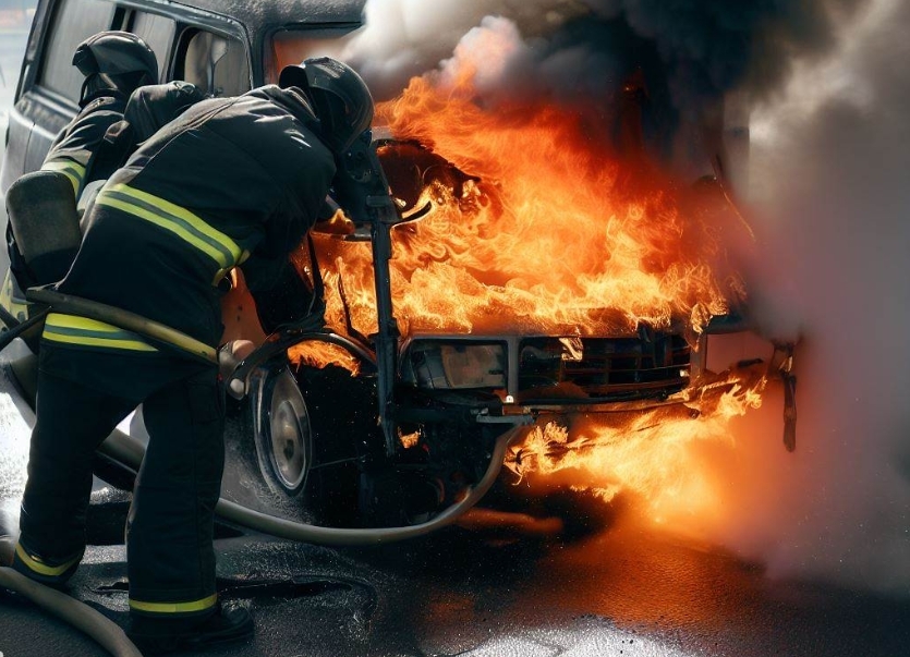 Огнеборци се отзовали на сигнал, получен в 15:19 часа, и загасили пожара, преди да обхване колата.