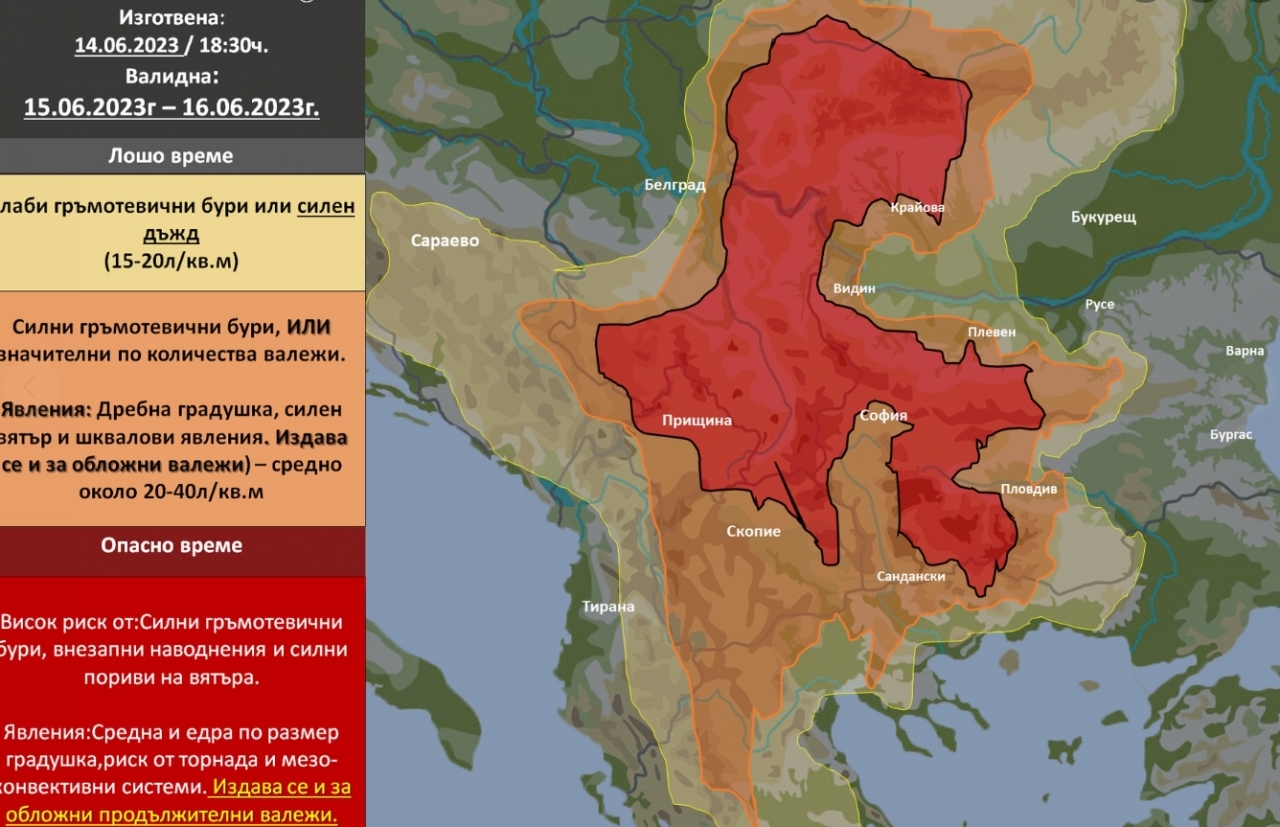 В Северозападна България, в Западния и в Централния Предбалкан ще има локални интензивни и значителни по количество валежи, достигащи и надхвърлящи 30-50 литра на квадратен метър.