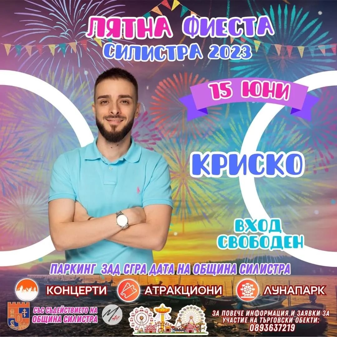 Тази вечер на 15 юни от 19.00 часа зад общината на паркинга концерта на певеца-продуцент Криско Криско.