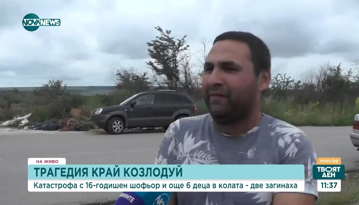 "Не знаех къде е. В 4:00 ч. дойде едно момиче и ме събуди с думите: "Ставай, че Нанко е умрял". Детето ми е на 13 години. Утре има рожден ден". Това каза пред камерата на NOVA бащата на едно от децата, загинали в жестоката катастрофа край Козлодуй. При трагедията, станала около 1:30 ч. в нощта срещу петък, почина още едно момче - на 15 години, а петима други непълнолетни бяха ранени. Зад волана на колата, забила се в крайпътно дърво, седял 16-годишен. Всички пътници били роднини.