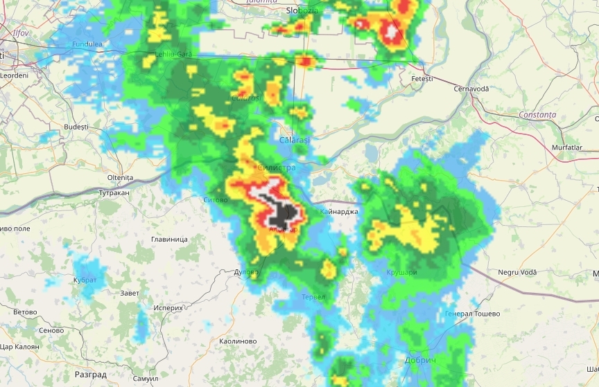 Дъждовна-гръмотевична буря се развива над общините Силистра, Алфатар и Кайнарджа.