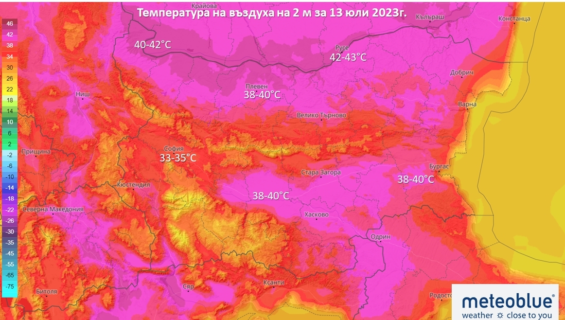 Имайте предвид, че в големите градове през летните дни най-добре се усеща градския топлинен остров и реално температурата, в централната част на града ще е по-висока!