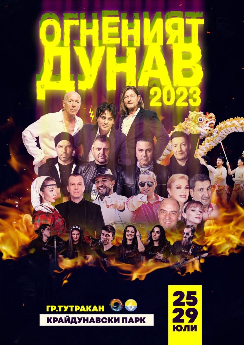 - Кулминацията на фестивала ще е в събота – 29 юли, в пространството пред Кейовата стена. Гвоздеят на вечерта е рок концерта на легендарната група "Сребърни крила" (Srebrna krila), които след много години се събират отново, специално за "Огненият Дунав" с техния фронтмен с незабравимия дрезгав глас Владо Калембер. Заедно с тях ще забият и Б.Т.Р. Неотменна част на празника е огненото и лазерното шоу, а водещ, както винаги ще е Наско от БГ Радио.