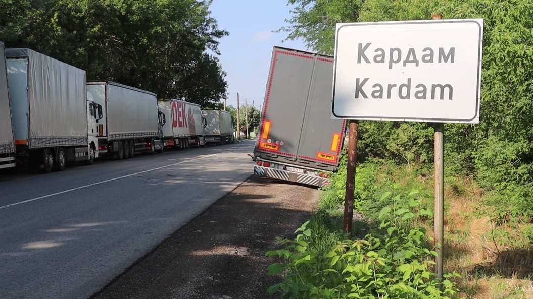 Опашката от камиони към момента е до средата на село Кардам, без да е направена каквато и да е организация за движението им, така че да не се създават предпоставки за ПТП и населеното място да не е блокирано, посочи кметът Георги Събев.