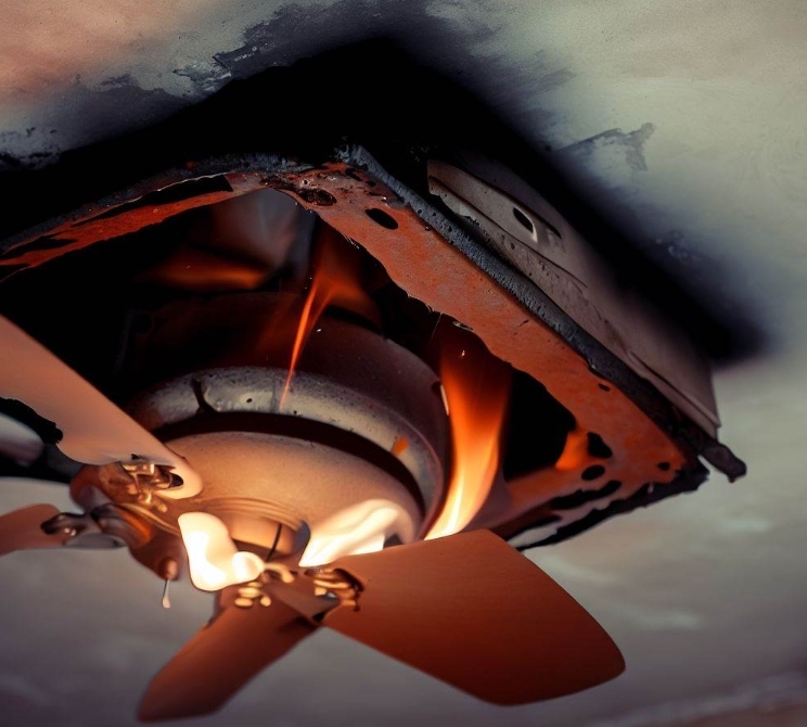 Огънят е започнал в банята, където е бил включен вентилатор. Вентилаторът е бил стар и не е бил в добро състояние. Вследствие на късо съединение, вентилаторът се е запалил и огънят се е разпространил в банята.