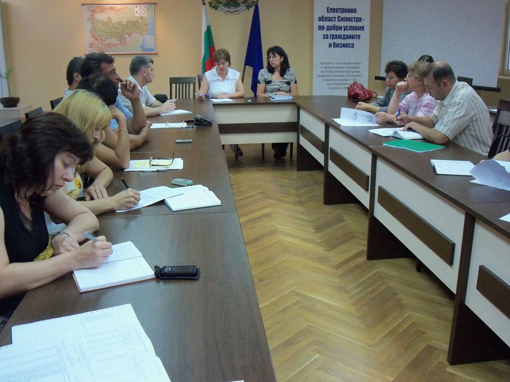 Днес (26.07.2011 г.) в заседателната зала на областната администрация се проведе работна среща на техническия екип на областната администрация и общинските администрации с ръководителите на сектори "Български документи за самоличност" и "Миграция" в ОУ на МВР-Силистра. Срещата бе домакинствана от заместник областния управител Денка Михайлова, която е и ръководител на техническия екип в Областна администрация-Силистра.