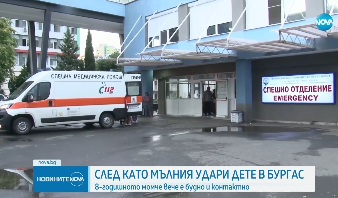 Припомняме, че то беше ударено от мълнията в четвъртък, докато с родителите и сестричката му вървели по пясъка на централния плаж в града. Семейството бързало да се скрие под козирката на близкия ресторант от бурята, която връхлетяла Бургас. Баща му го занесъл на ръце в Спешното отделение на болницата.