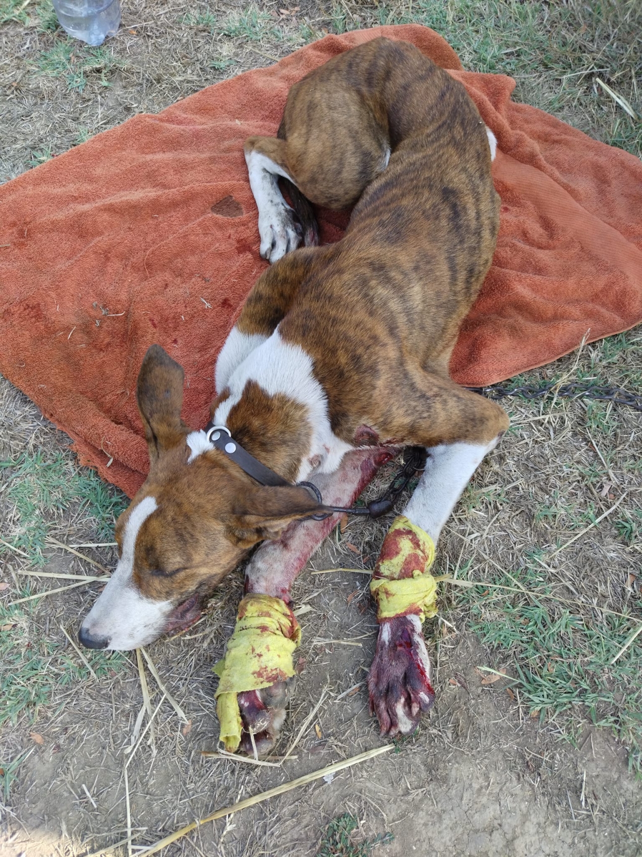 За щастие животното е спасено, но е с множество открити рани по лапите и тялото, като на места козината е протъркана до месо.