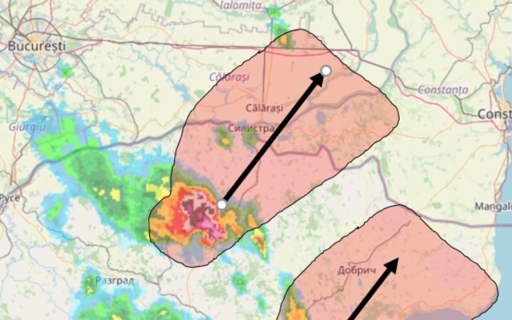 Силна гръмотевична буря приближава района на Силистра 06 Август 2023 г. Природни бедствия 3377 Сбъднаха се прогнозите за суперклетка в Североизточна България. На радарната снимка се вижда характерната кука - ехо. Бурята ще се усили и ще се насочи на североизток към Силистра.