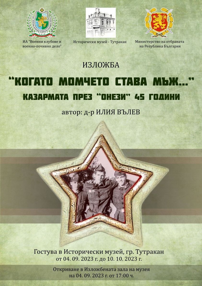 Мобилна изложба със заглавие "Когато момчето става мъж…" Казармата през "онези" 45 години" ще гостува в Историческия музей в Тутракан от 4 септември. Това съобщиха от културната институция в профила си в една от социалните мрежи.