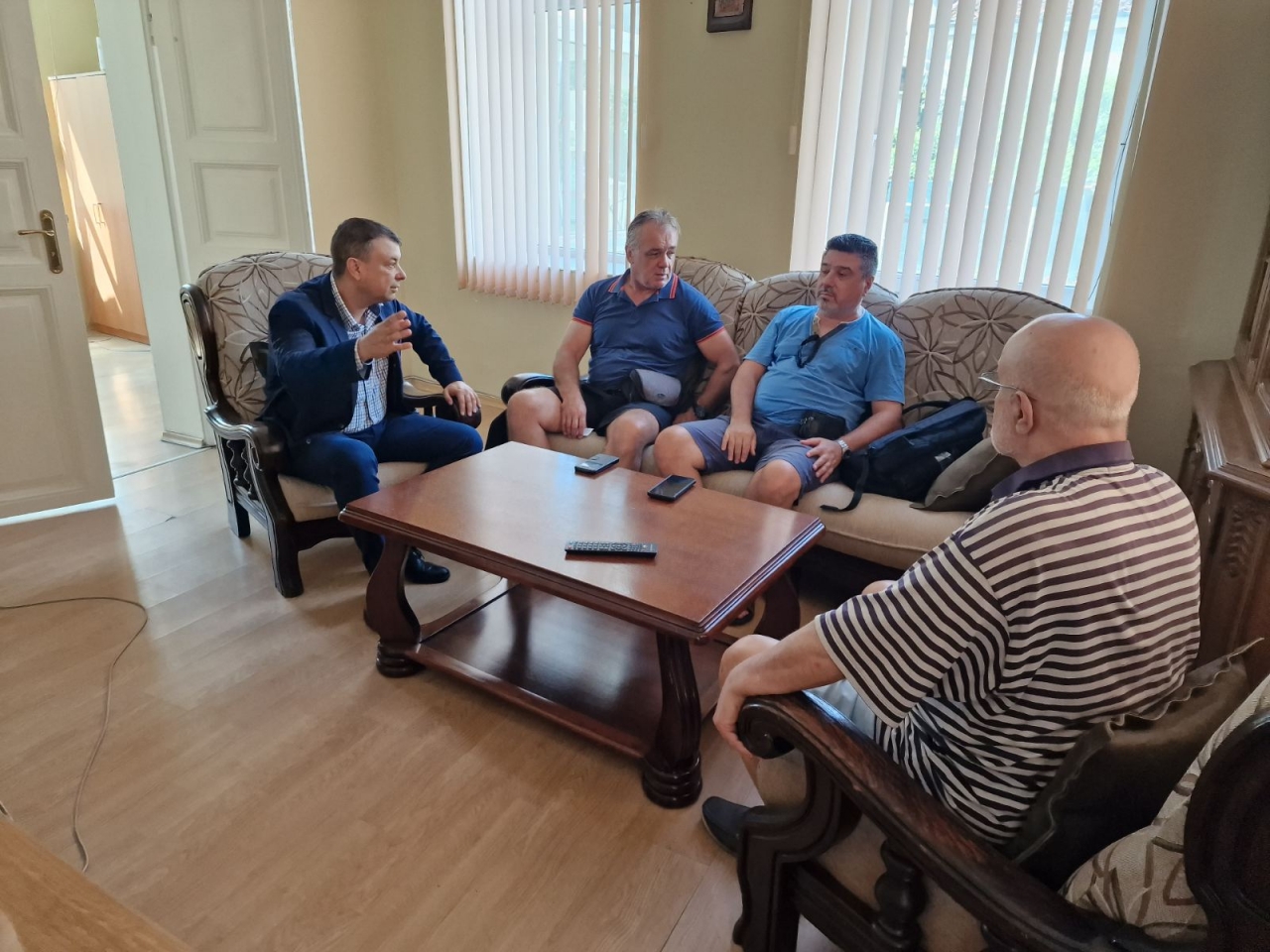 Силистренският бизнесмен Александър Сабанов, който е бил народен представител в 44-ото Народно събрание, разговаря днес с румънските учени професор д-р Стефан Дорондел и д-р Стелу Шербан, които работят по проекта "Състояние, общности и природа на островите на Долен Дунав: История на околната среда (1830-2020)".