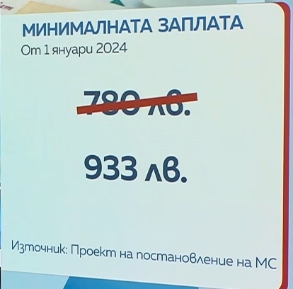 Министерският съвет предлага минималната работна заплата в страната да стане 933 лева от 1 януари 2024 година. Това става ясно от Проект на постановление, публикуван в портала за обществени консултации.