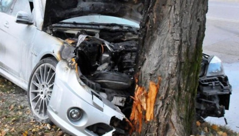 20-годишен водач на лек автомобил "Мерцедес" е изгубил управлението и се ударил в крайпътно дърво, при което той и негов 17-годишен спътник са получили средни телесни повреди и са настанени в болница.