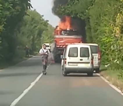 В резултата на пожара превозното средство е изгоряло напълно. Водачът на трактора е успял да се спаси и няма пострадали.