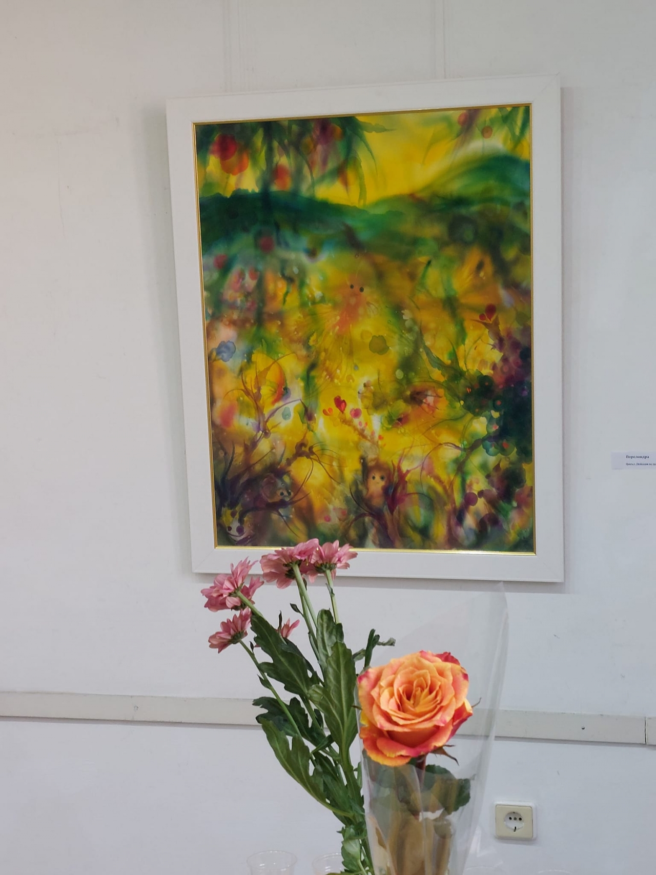 Изложбата представя рисувана коприна от цикъл "Пейзажът на щастието" и цикъл "Вълшебните портали" на авторката.