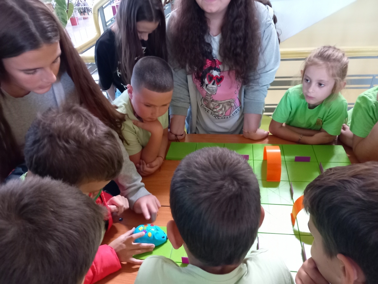 Малките ученици също се включиха в активността, като програмираха мишките-роботи да намерят сиренцето. Те задаваха различни траектории за движение на мишките, за да достигнат до сиренцето.