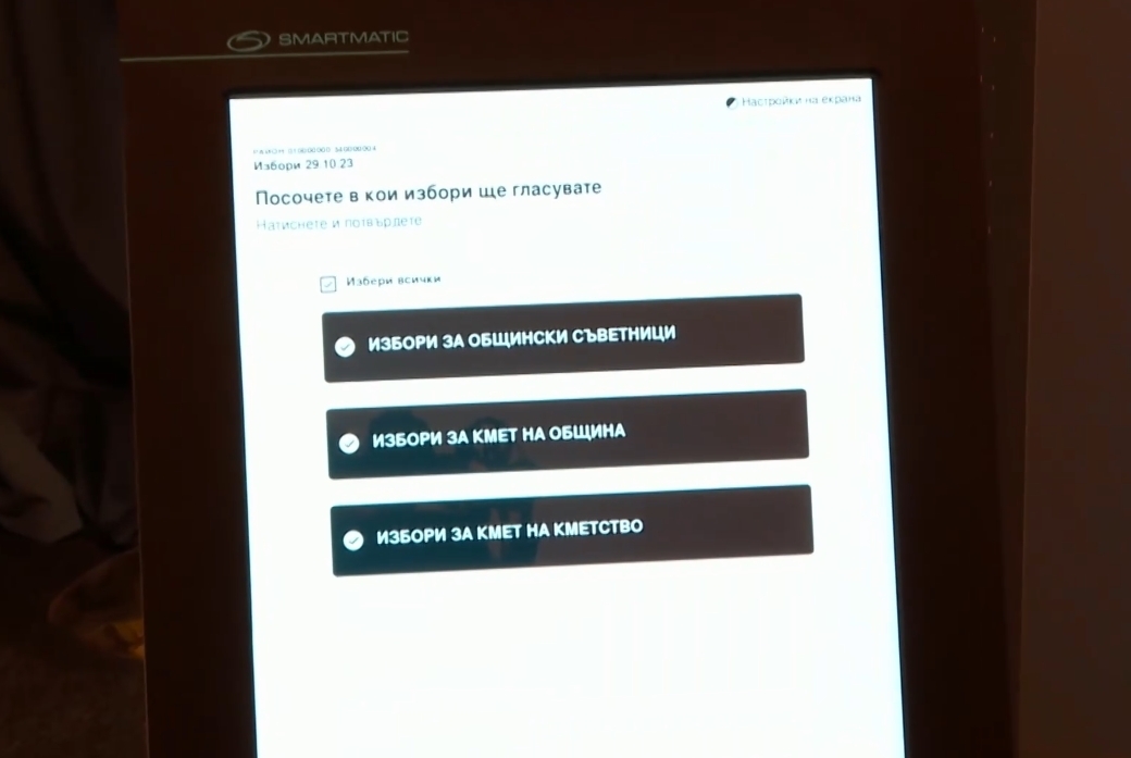 Избирателят поставя картата, визуализира се екранът, в който се показват бюлетините, за които ще има право избирателят в тази секционна избирателна комисия да гласува. Той трябва да маркира своя избор, така, както, заставайки пред секционната избирателна комисия трябва да заяви за кои избори желае да гласува, за да му бъдат откъснати бюлетини, така тук трябва да заяви своето желание.