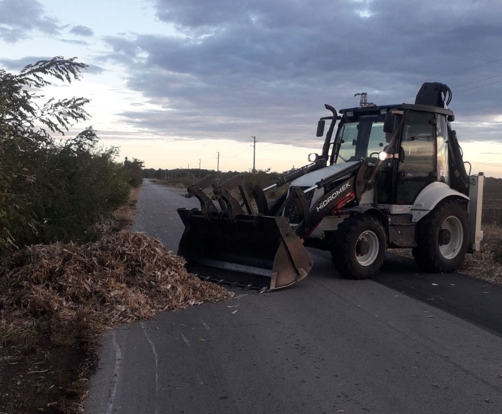 Служителите на ОП "ОИ и КД" на Община Главиница реагираха бързо на навявания от царевична шума по пътя Сокол-Главиница
